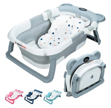 Una de las principales ventajas de la bañera plegable es su estructura portátil. Este diseño permite que los padres puedan llevarla a cualquier lugar, ya sea en casa o durante viajes. La posibilidad de pliegue facilita su almacenamiento, ocupando poco espacio cuando no está en uso. Además, el cojín incorporado brinda un soporte ergonómico para el bebé, haciendo que su experiencia de baño sea placentera y cómoda.