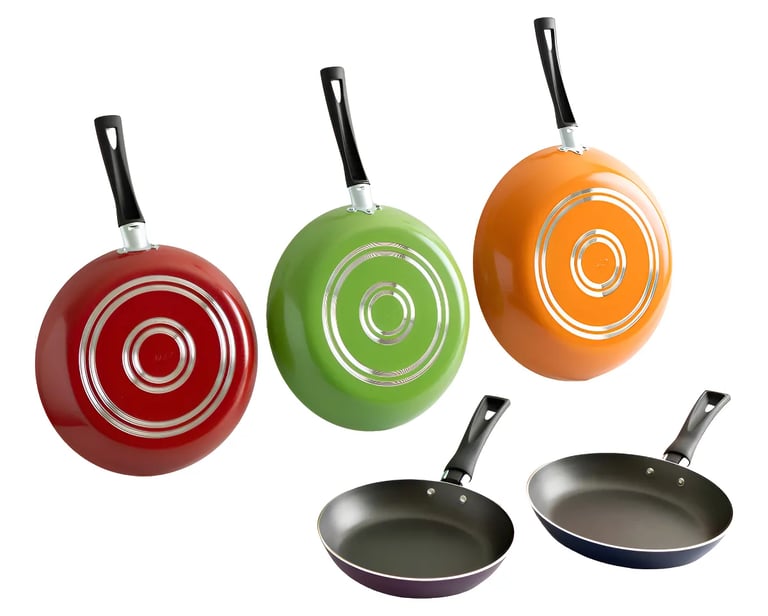 Otro punto importante es la variedad de colores que ofrece el set. Cada sartén presenta un acabado vibrante que no solo aporta estética a tu cocina, sino que también facilita la identificación de cada pieza. Además, el diseño ergonómico de los mangos asegura un agarre cómodo y seguro durante su uso.